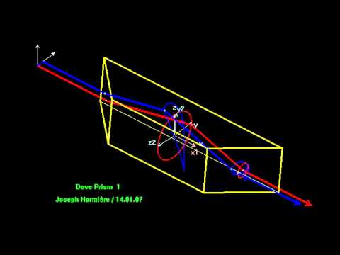 Dove Prism 1 - Dove Prisma - Dove prisme rotation. Rotation d'un prisme de Dove autour de son axe et trajectoires des intersections d'un rayon parallèle à l'axe avec les dioptres. Simulation ...